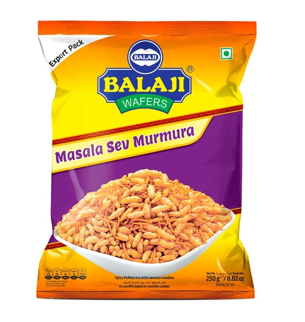 Balaji Masala Sev Murmura is made with puffed rice, delicious fried sev, and spices from Gujarat, India. It's a symphony of masala, sev and kurmura, enriched with chilli and garlic - a crispy and delicious snack that is known as a real hit with young and old and can be enjoyed at any time of the day.