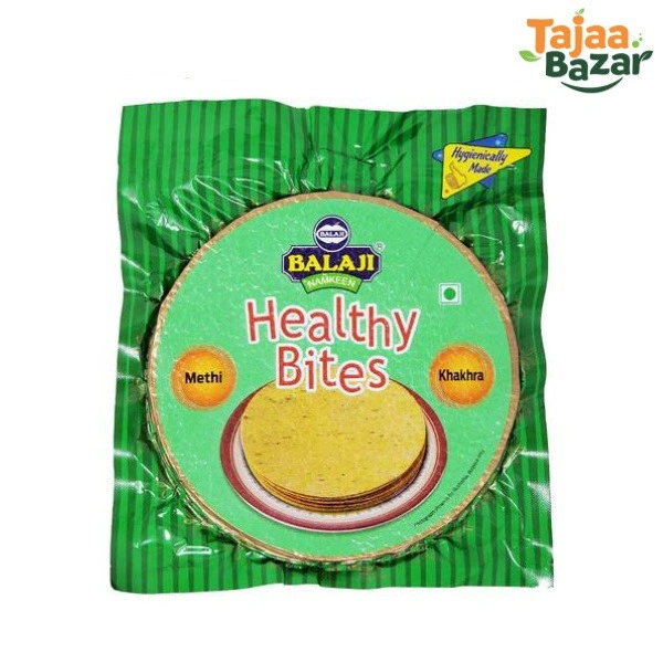 Balaji Methi Khakhra is is a thin and flat cracker originating from Gujarat. It is a tasty snack can be enjoyed any time of the day and can also be eaten as a tea-time snack. The addition of Methi in the Khakhra makes it more flavourful.