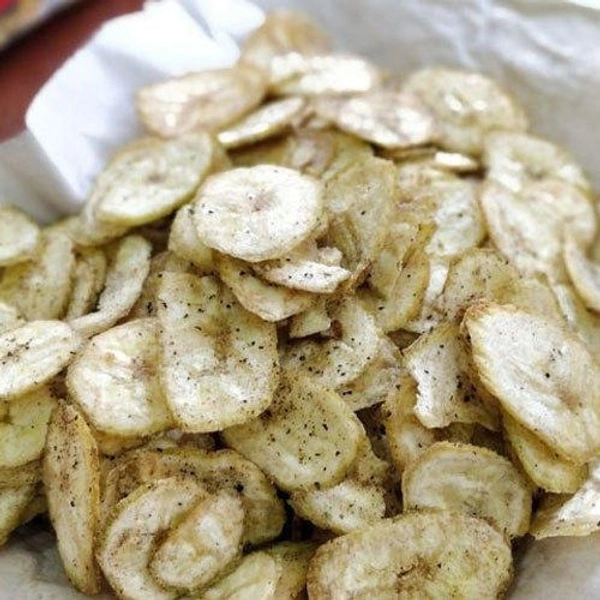 - Yellow banana chips are salty thin banana chips ready to eat.