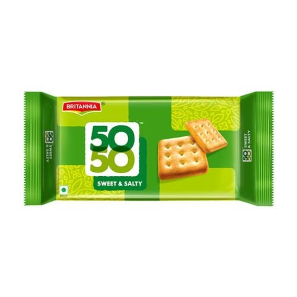 Golden brown in colour and light on your palate, Britannia 50-50 Time Pass Biscuits are the one that every snacking lover is seeking for. Light, crispy texture with the classic salty flavor and that melt-in-mouth experience that you won't be able to resist. We won't blame you if you polish off a whole pack in one go!