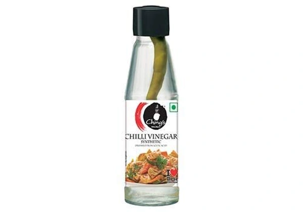 Pep up your desi Chinese dishes with Ching's Secret Chilli Vinegar for an edgy flavour. A fine quality chilli vinegar, it is made using green Jwala chilli soaked in sharp vinegar. Add Ching's secret vinegar to your dishes and enjoy their exotic taste. Just a few drops are enough to sizzle up your Chinese dishes.