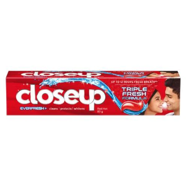 Closeup Everfresh++ Gel Toothpaste with Triple Fresh Formula (TFF) harnesses the combined power of 3 components – Anti-bacterial mouthwash with fights 99% germs in mouth, Purifying Gel which clean deep corners of mouth and Natural Extracts of Tea Tree and Eucalyptus to keep your mouth clean, protected and fresh.