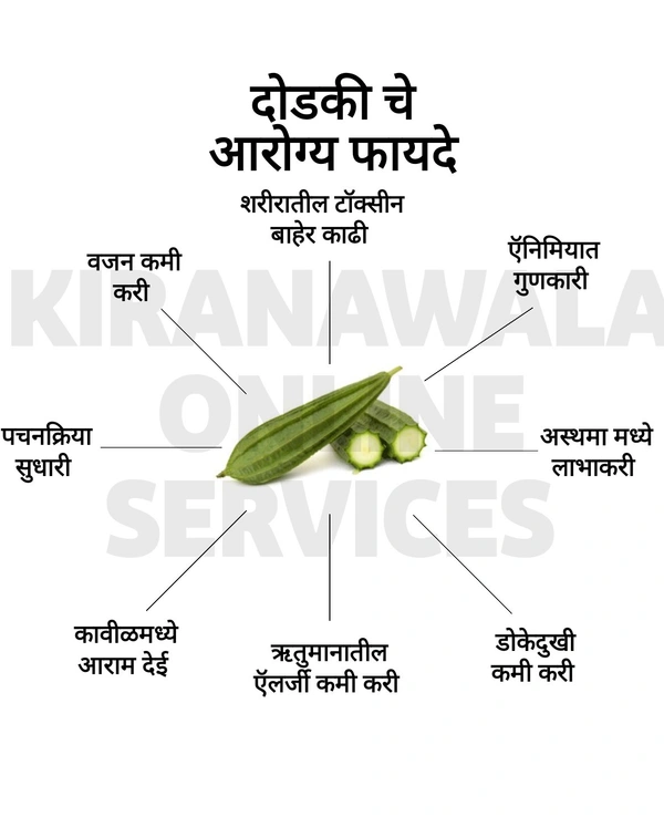 ही भाजी अनेकांना आवडत नाही म्हणूनच याला दोडका हे नाव पडलं असावं. पचायला अतिशय हलकी असलेली ही भाजी पथ्याची समजली जाते, कारण त्यात फॅट खूपच कमी असते आणि कॅलरीज जवळजवळ नसतातच. रक्तदाब आटोक्यात ठेवण्यासाठी आणि यकृताच्या आरोग्यासाठी दोडका उपयुक्त आहे. दोडक्याच्या सेवनाने मूळव्याध आणि मलावरोध या दोन्ही व्याधीत फायदा होतो.
