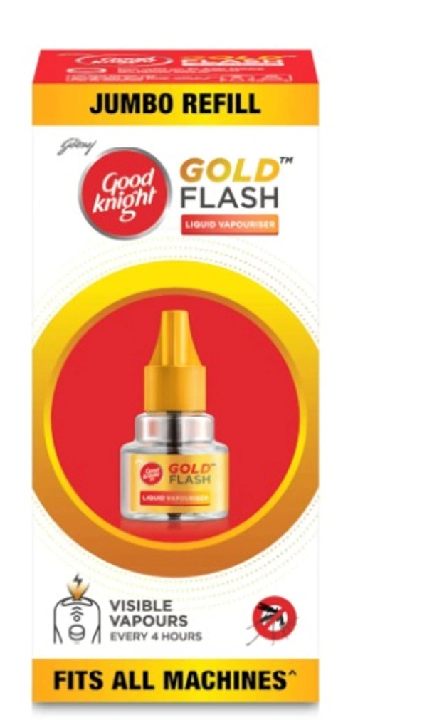 Good knight Gold Flash is India's Most Powerful Liquid Vapouriser. It consists of a mosquito repellent refill and clip-on electronic mosquito repellent machine. This vapouriser system is powered by Gold Flash technology that has 2 modes - Flash and Normal Mode.