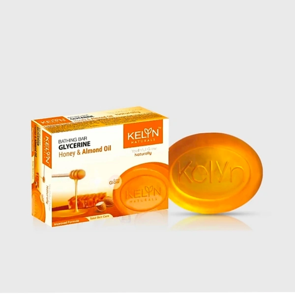 Kelyn Kelan Bathing Bar Glycerine Aloe Vera and Honey & Almond Oil Soap 75g A transparent bar mixed with Aloe vera prepard with glycerine. Glycerine soap gently cleanses the skin and helps to keep the skin moisturized and radiantly beautiful all day. Use regularly for that extra soft skin and glow.
