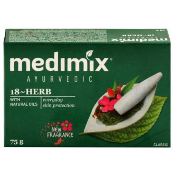 Medimix Ayurvedic Classic 18 Herbs Bathing Soap is enriched with 18 exceptional herbs in an effective skincare formulation. It protects your skin from the inside. This soap drives away body odour. It protects your skin against pimples, rashes and boils, fights prickly heat and improves the smoothness of your skin.