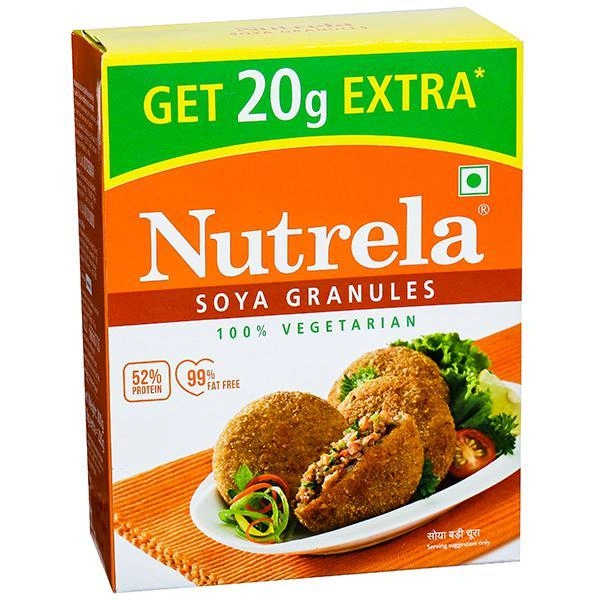 Nutrela Soya Granules are made from soy flour. Soya Granules contain immunity building nutrients, protein, iron and zinc. It is rich in dietary fiber and strengthens your immunity. They are ready to cook and in an easily manageable shape.
