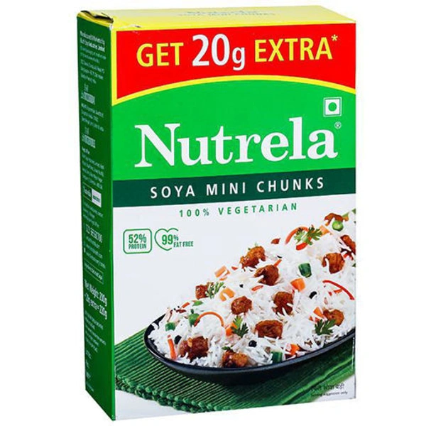 Patanjali Foods Ltd Nutrela Soya Mini Chunks are made from soy flour. Soya Chunks contain immunity building nutrients, protein, iron and zinc. It is rich in dietary fiber and strengthens your immunity. It is very easy to prepare and makes tasty dishes.