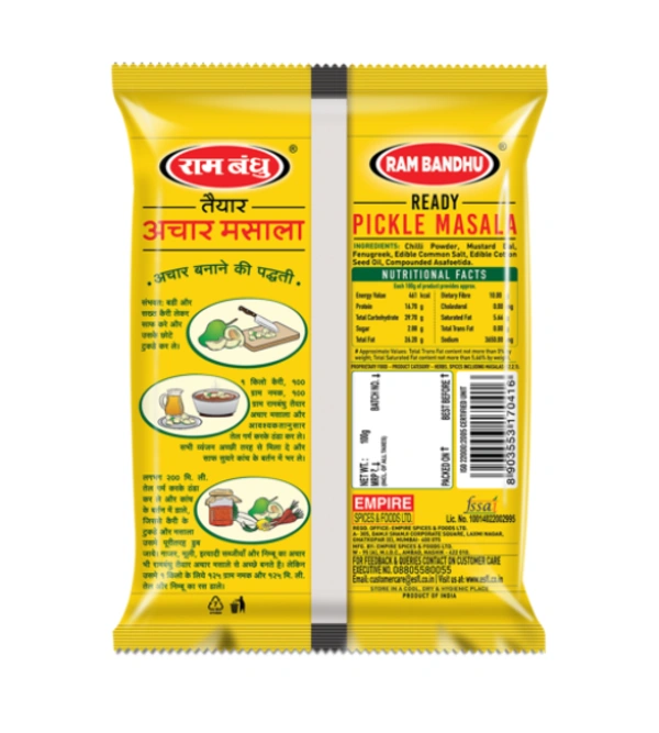 The best blend of handpicked spices coupled with Hira Hing & Resham Patti chilli to lend that awesomely tangy flavour to any and all pickle preparations. It is the secret to satisfying your urge for that lip smacking tanginess!
