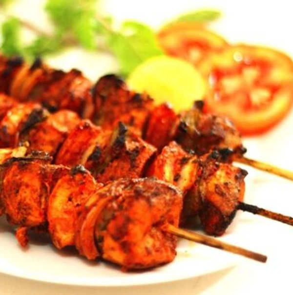 Chicken tikka masala is a dish consisting of roasted marinated chicken chunks (chicken tikka) in a spiced sauce. The sauce is usually creamy and orange-coloured. The dish was popularised by cooks from South Asia living in Great Britain and is offered at restaurants around the world.