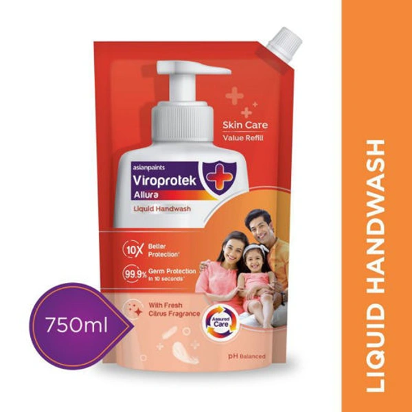 Asianpaints Viroprotek Allura Liquid Handwash is a liquid skincare hand wash. It is pH balanced and also offers 10X better protection. It provides 99.9% germ protection in 10 seconds and leaves a fresh citrus fragrance. Key Ingredients: Sodium laureth sulfate.